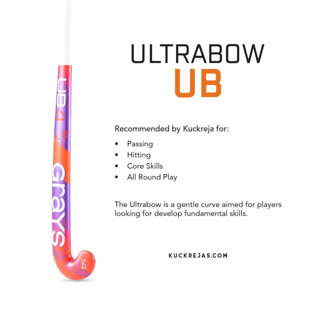 The Grays UB4 Ultrabow offers moderate power and intermediate control ratings.An Ultrabow stick is ideal to learn and perfect the basics of hitting, slapping, stopping and pushing – before elvolving to more complex bow profiles.The Grays UB4 consists of approximately 20% Carbon, along with other materials such as Fibreglass, Aramid and/or other Resins – to complete the exclusive Grays GX Stick composition that players all over the world love to use.Length: 36.5″